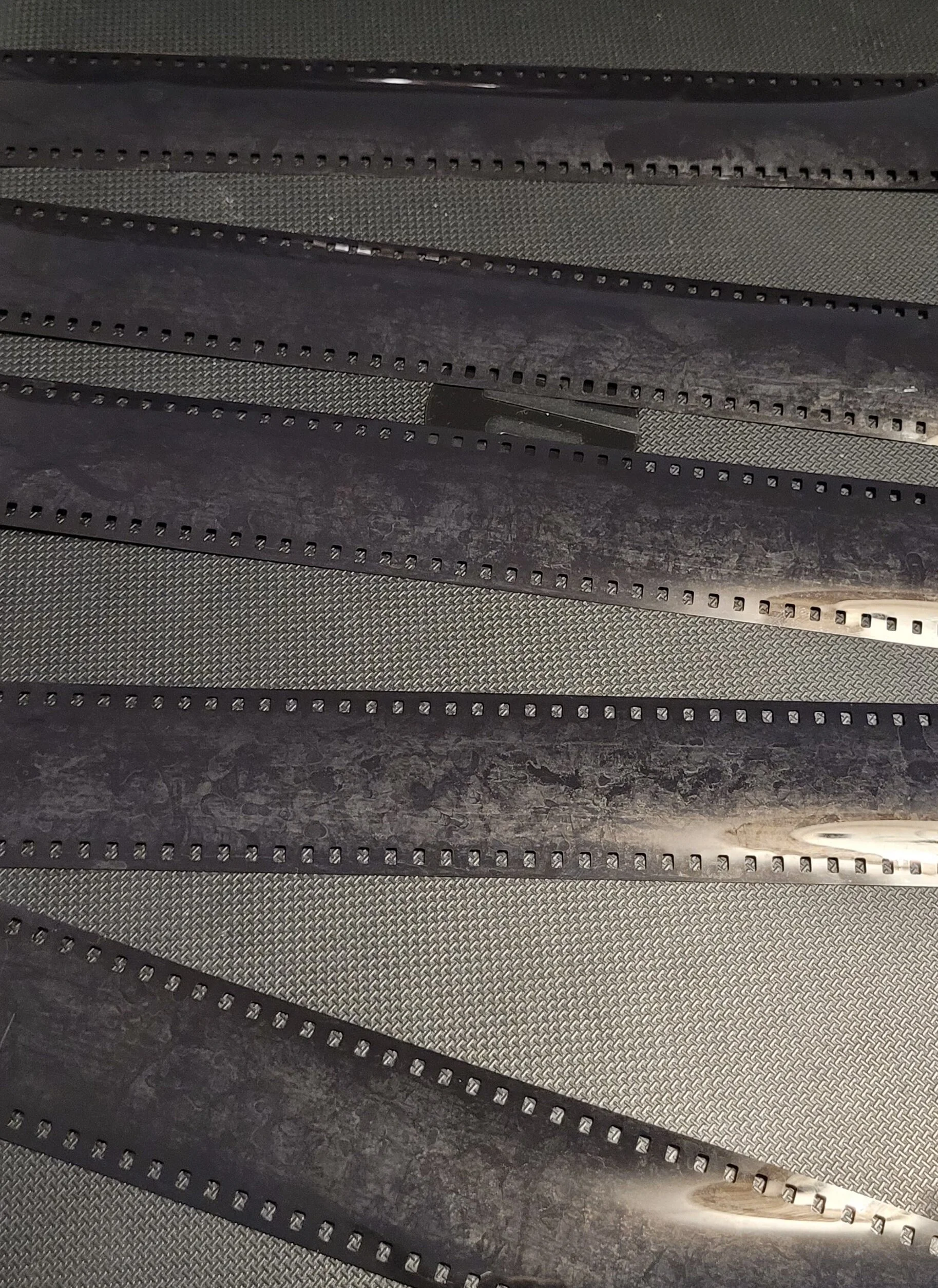 After looking into different methods of cleaning negatives, I had to take what I had learnt from my experience in kitchens. The only way to really break down oils is dish soap. Starting with a few different approaches to this, I opted to dunk the negative in soapy water and then wipe softly. I can be really impatient and it is clear here as I should have, in hindsight, done a final wash in water with a bit of rinse aid. I cleaned this film right before bed and in my tired state, wiped it on top of a clean tea towel, to protect it against a possible dirty work surface. The top was clean and oil free, but the emulsion side picked up all of the tiny pieces of loose dust and fabric from the towel before I hung it up to dry.